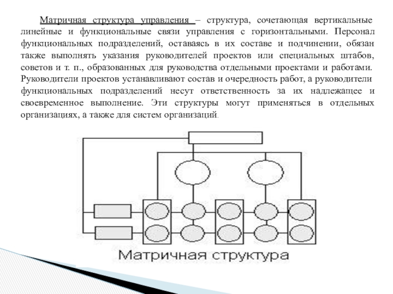 Слайд 11Матричная структура управления – структура, сочетающая вертикальные линейные и функциональные связи
