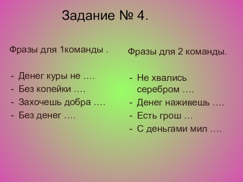 Фразы для 2 команды.
