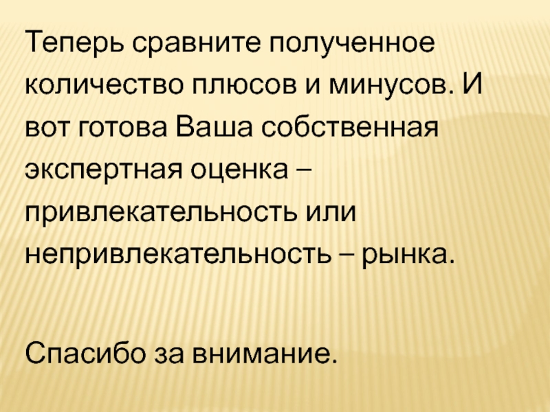 Слайд 19Теперь сравните полученное количество плюсов и минусов. И вот готова Ваша