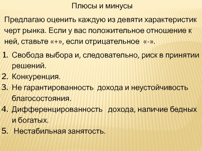 Предлагаю оценить каждую из девяти характеристик черт рынка. Если
