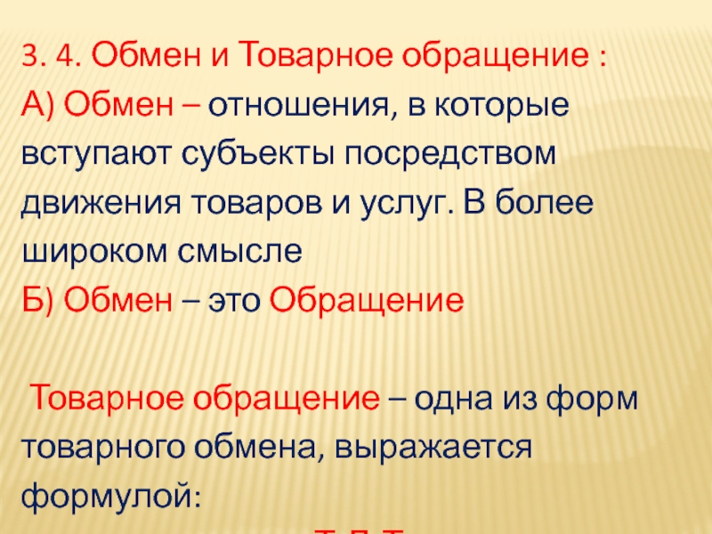 Товарное обращение – одна из форм товарного обмена, выражается формулой: