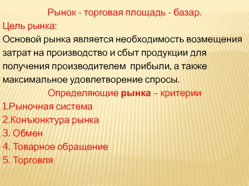 затрат на производство и сбыт продукции для получения производителем прибыли, а также максимальное удовлетворение спросы.