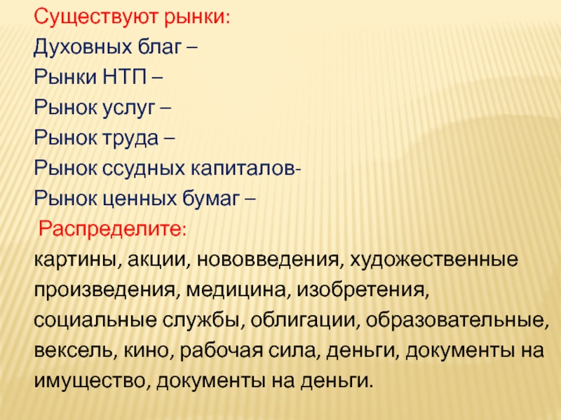 картины, акции, нововведения, художественные произведения, медицина, изобретения, социальные службы, облигации, образовательные, вексель, кино, рабочая сила, деньги, документы на имущество, документы на деньги.