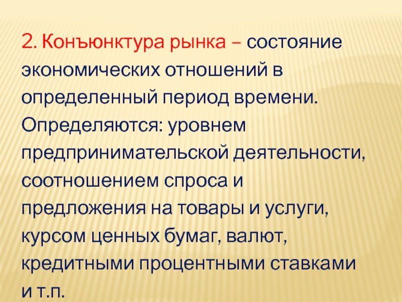 Слайд 72. Конъюнктура рынка – состояние экономических отношений в определенный период времени.