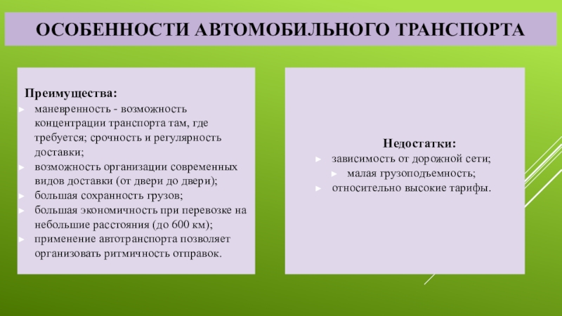 большая экономичность при перевозке на небольшие расстояния (до 600 км);