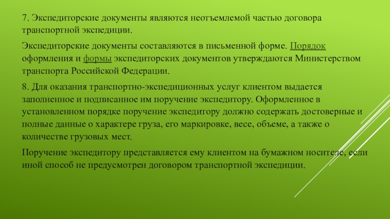 Слайд 317. Экспедиторские документы являются неотъемлемой частью договора транспортной экспедиции.