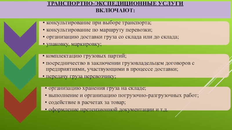 транспортно-экспедиционных услуг в рамках договора транспортной экспедиции);