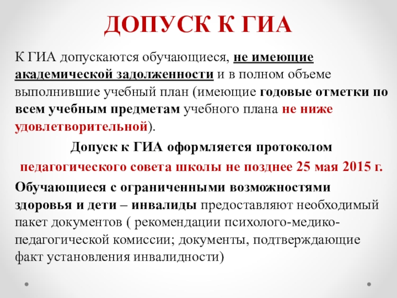 К ГИА допускаются обучающиеся, не имеющие академической задолженности и