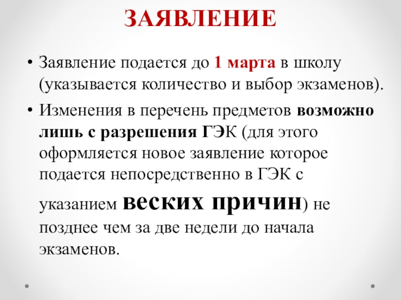 Изменения в перечень предметов возможно лишь с разрешения ГЭК (для этого оформляется новое заявление которое подается непосредственно в ГЭК с указанием веских причин) не позднее чем за две недели до начала экзаменов.