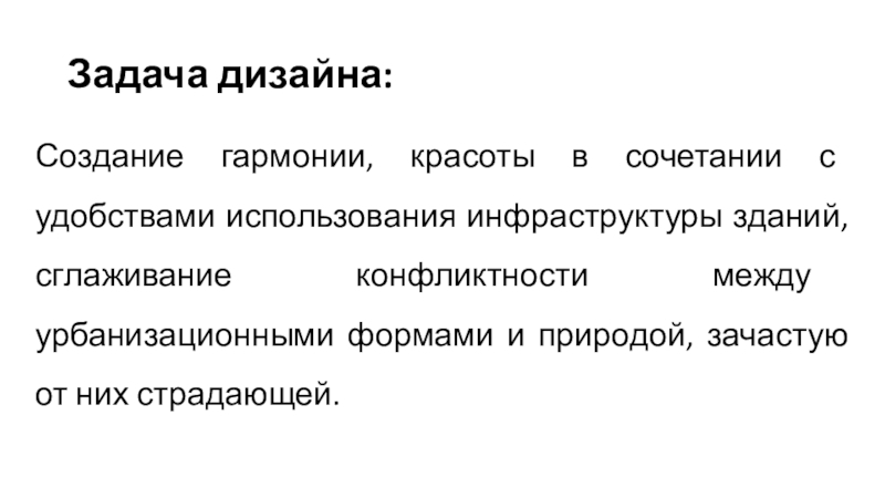 Создание гармонии, красоты в сочетании с удобствами использования инфраструктуры зданий,
