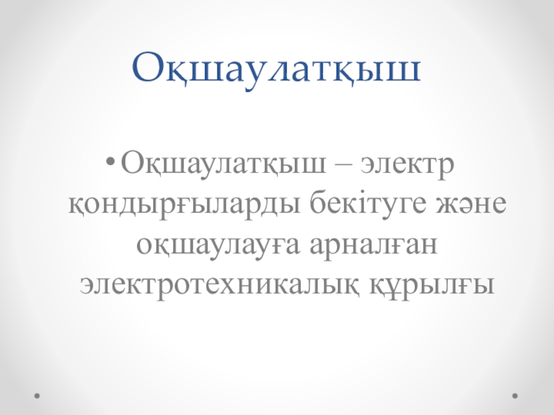 ОқшаулатқышОқшаулатқыш – электр қондырғыларды бекітуге және оқшаулауға арналған электротехникалық құрылғы