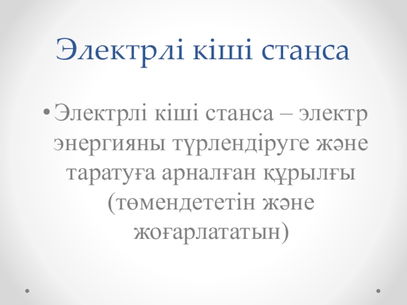 Электрлі кіші стансаЭлектрлі кіші станса – электр энергияны түрлендіруге және таратуға арналған құрылғы (төмендететін және жоғарлататын)