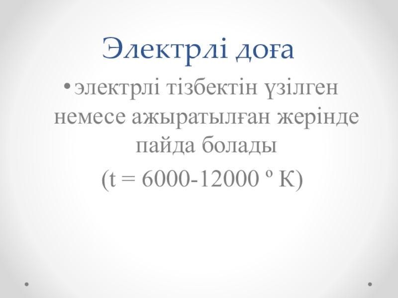 Электрлі доғаэлектрлі тізбектін үзілген немесе ажыратылған жерінде пайда болады (t = 6000-12000 º К)