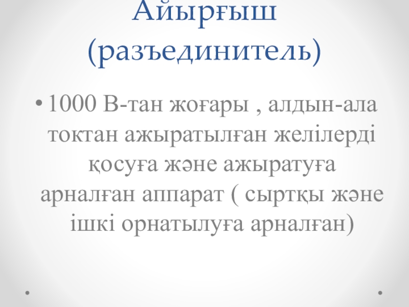 Айырғыш  (разъединитель)1000 В-тан жоғары , алдын-ала токтан ажыратылған желілерді қосуға және ажыратуға арналған