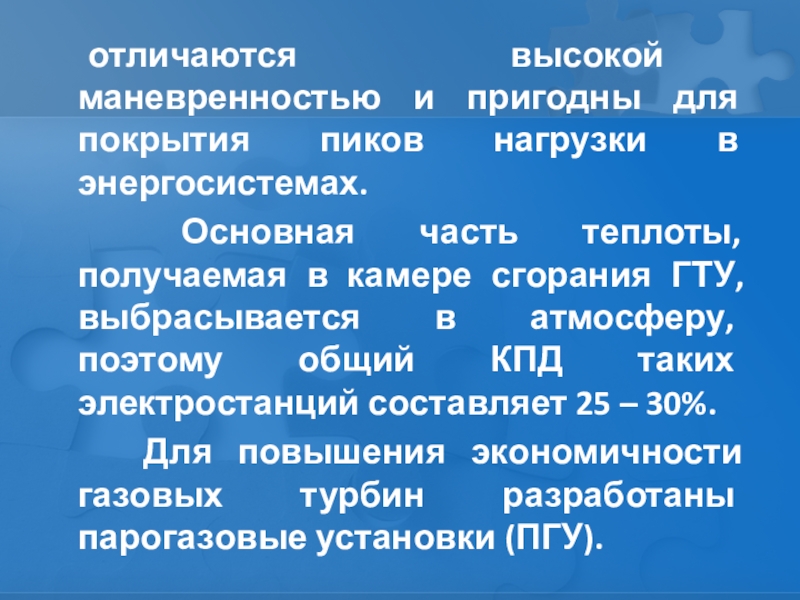 отличаются высокой маневренностью и пригодны для покрытия пиков нагрузки в энергосистемах.
