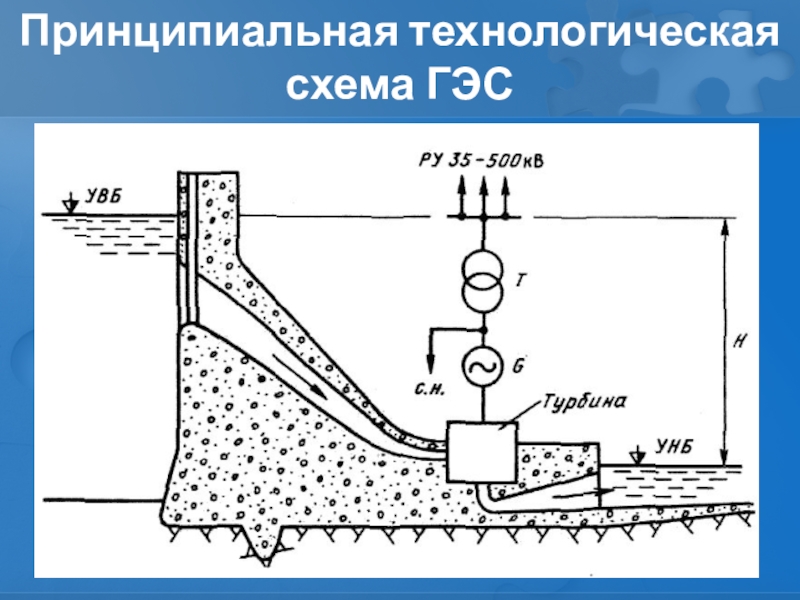 Слайд 22Принципиальная технологическая схема ГЭС