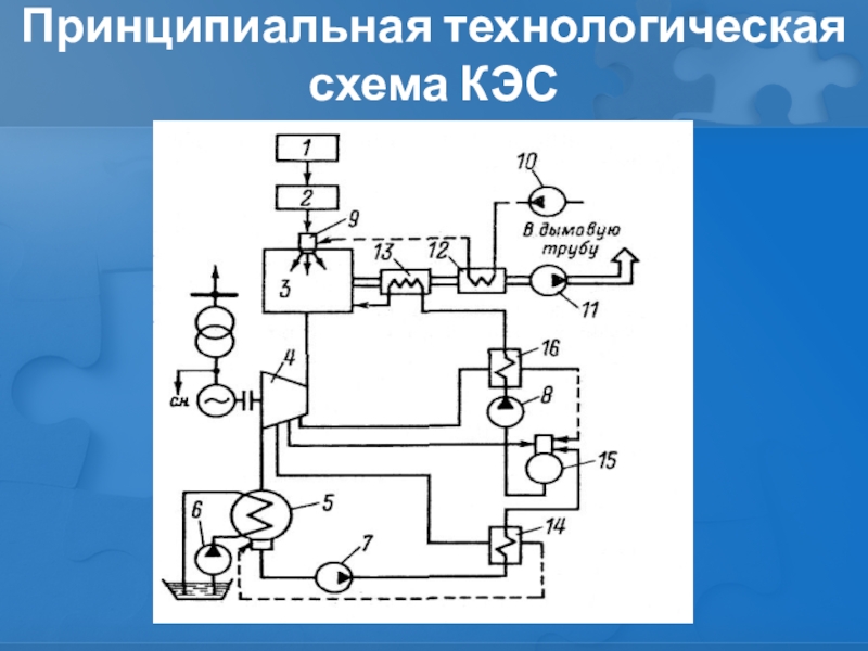 Слайд 5Принципиальная технологическая схема КЭС