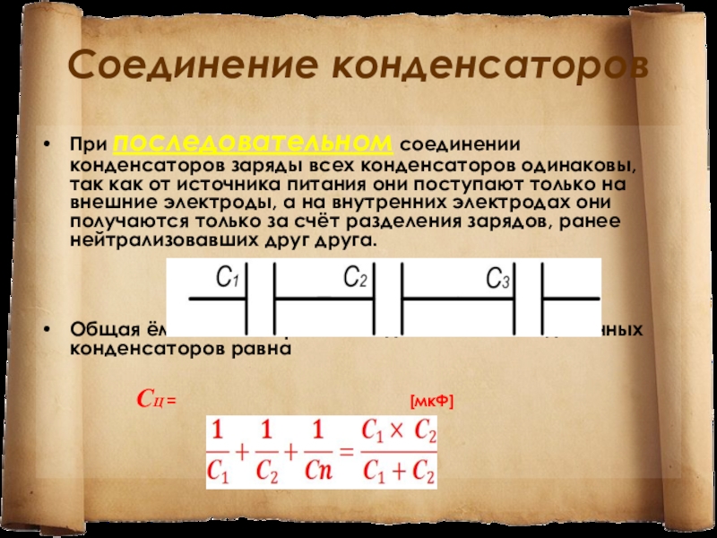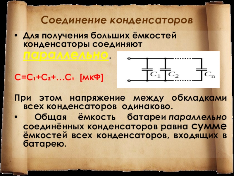 Слайд 10Соединение конденсаторов