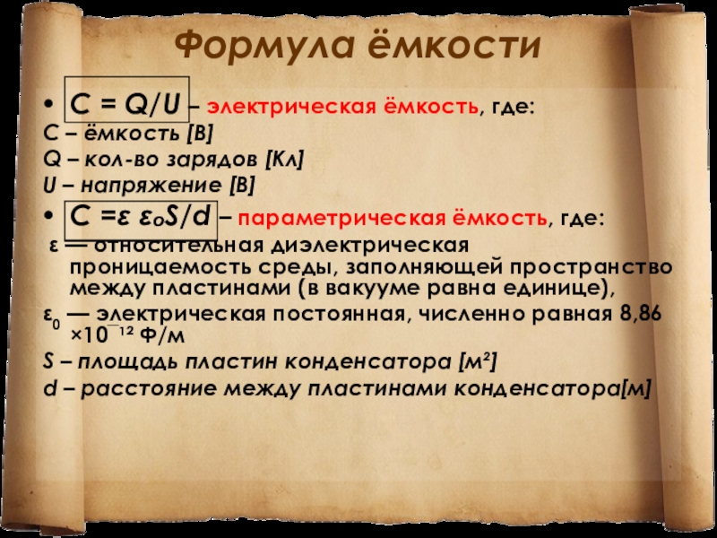 Слайд 9Формула ёмкости