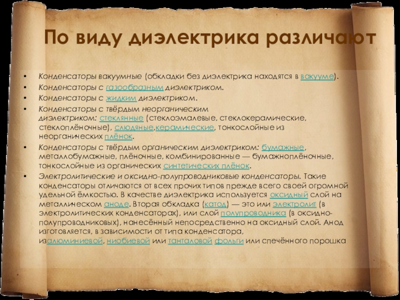 Слайд 14По виду диэлектрика различают