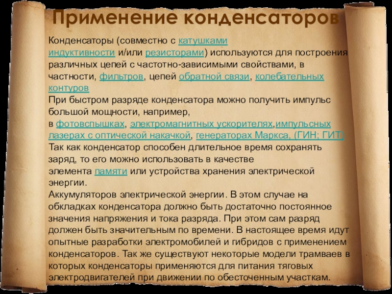 Применение конденсаторов