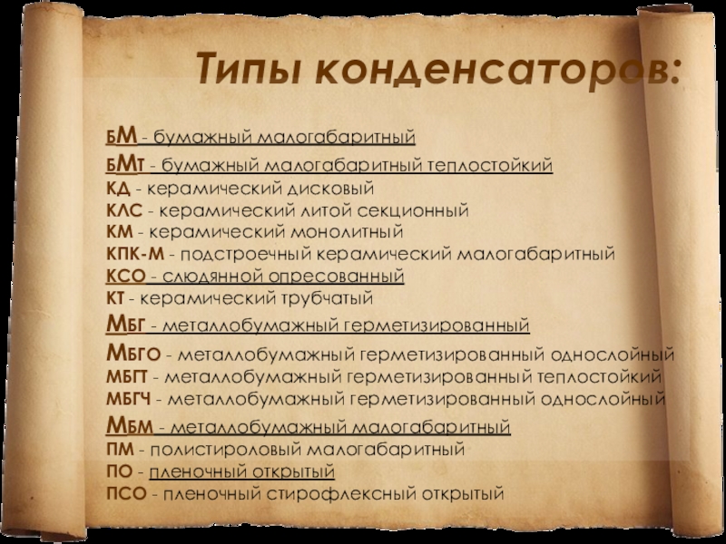 Слайд 16Типы конденсаторов: