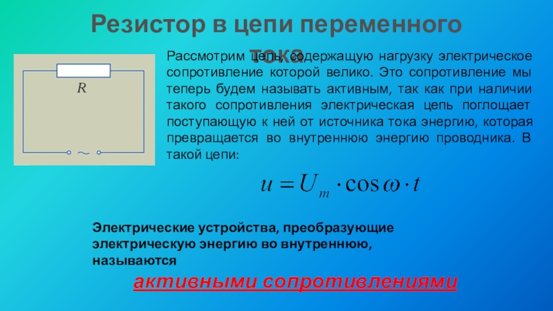 Электрические устройства, преобразующие электрическую энергию во внутреннюю, называются