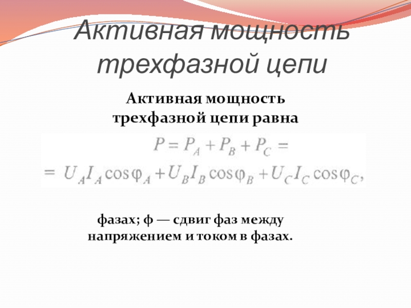 фазах; φ — сдвиг фаз между напряжением и током в фазах.