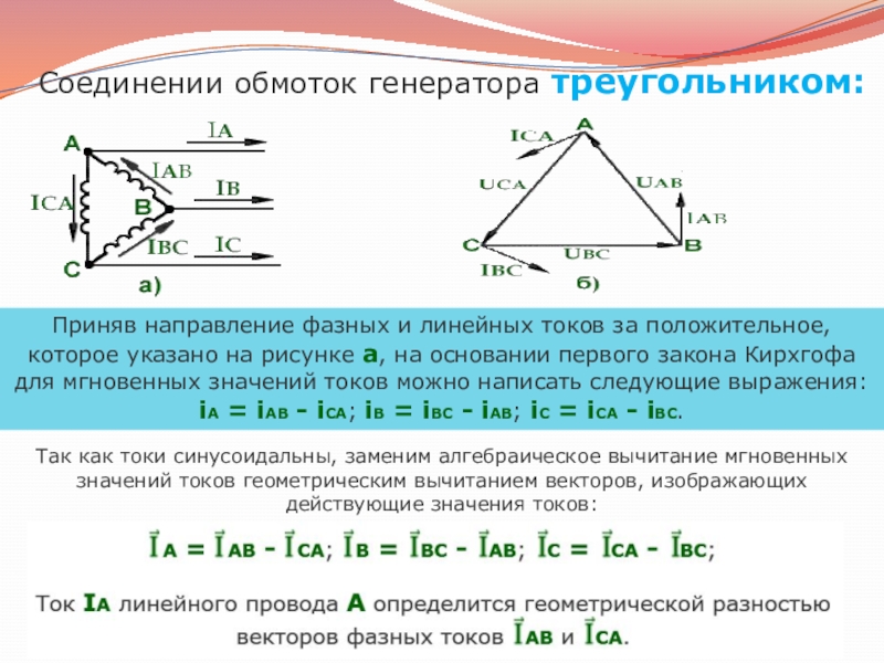 Так как токи синусоидальны, заменим алгебраическое вычитание мгновенных значений токов геометрическим вычитанием векторов, изображающих действующие значения токов: