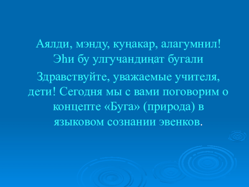 Сегодня мы с вами поговорим о концепте «Буга» (природа) в языковом сознании эвенков.