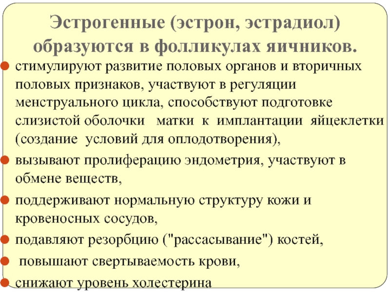 синтез эстрогенов, а у мужчин – созревание сперматозоидов (сперматогенез).