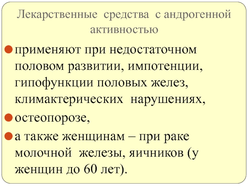 Это синтетические лекарственные средства, производные мужских половых гормонов, которые лишены