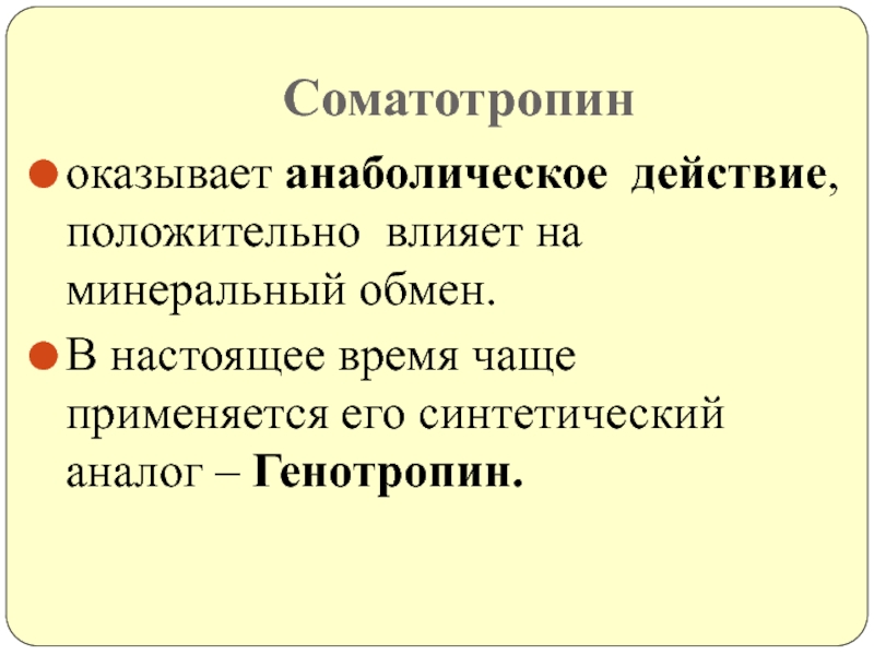 оказывает анаболическое действие, положительно влияет на минеральный обмен.