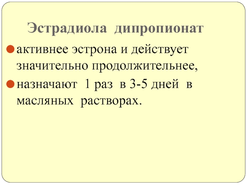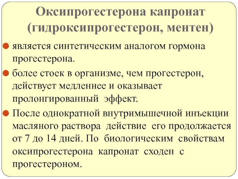 всасывания и выведения, что обеспечивает быстрое развитие эффекта и продолжительность действия до 4-х недель после однократного введения масляного раствора.