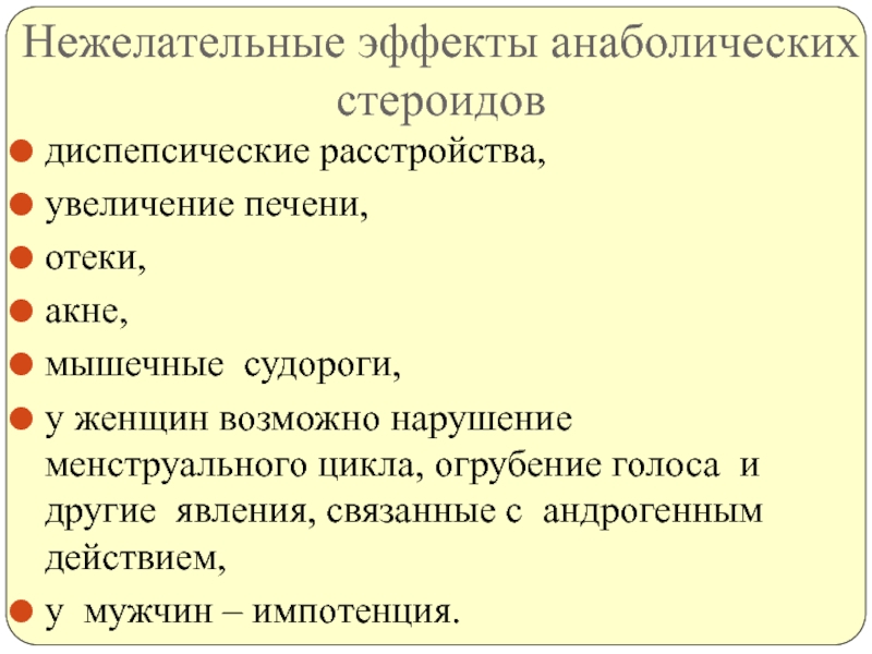 Слайд 123Нежелательные эффекты анаболических стероидов