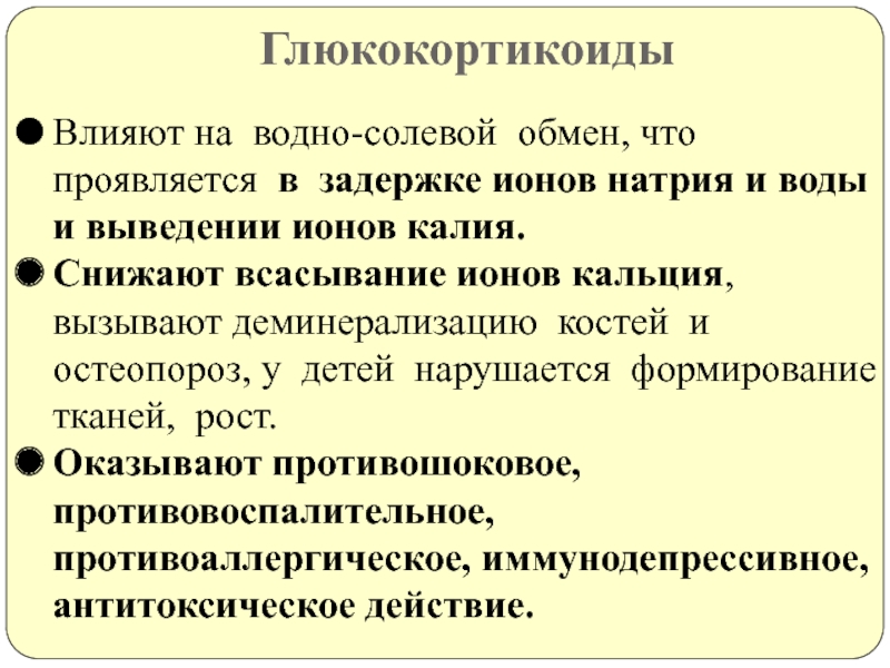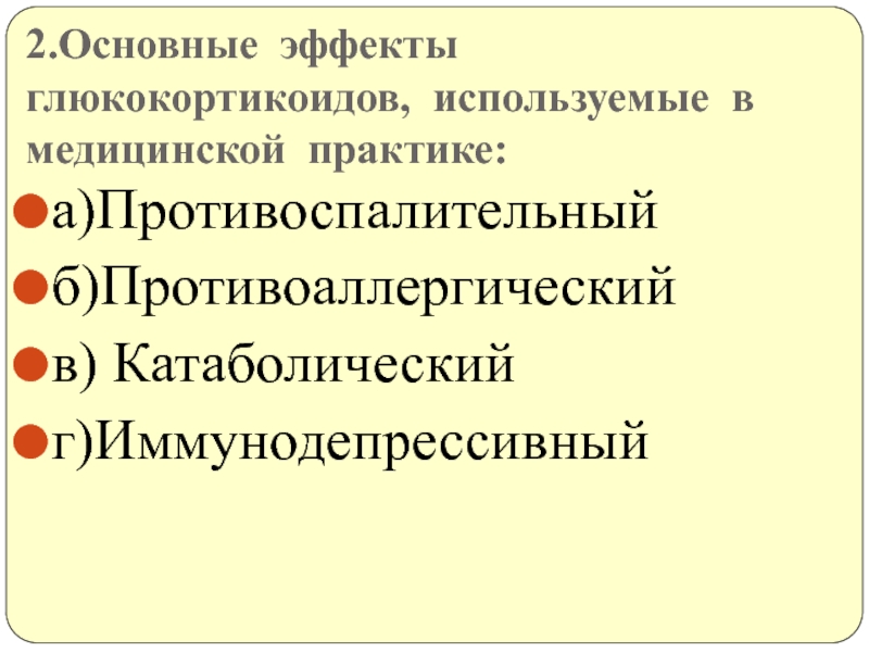 2.Основные эффекты глюкокортикоидов, используемые в медицинской практике: