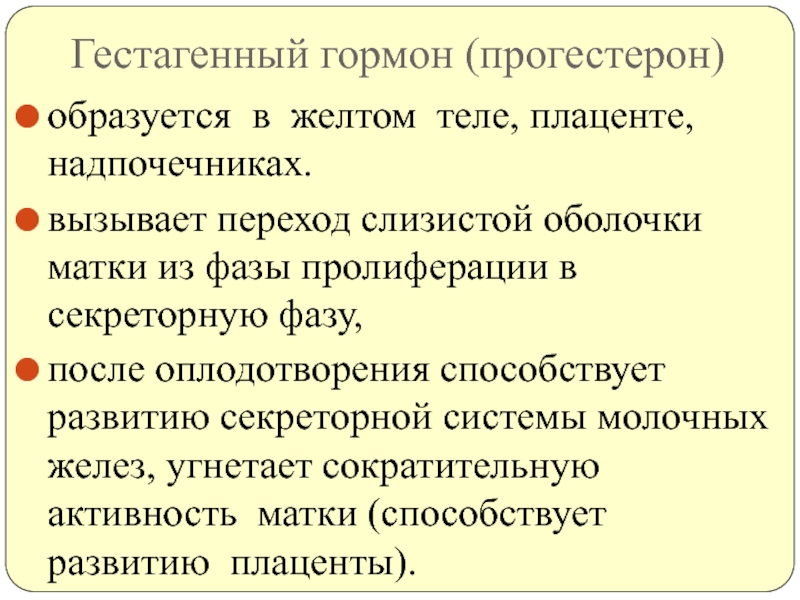 секрецию прогестерона, развитие и секрецию молочных желез.