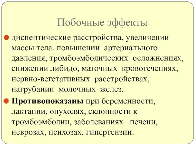 проявляются в повышении половой возбудимости, головокружениях, отеках,
