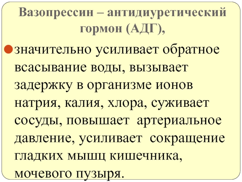 Слайд 18Вазопрессин – антидиуретический гормон (АДГ),