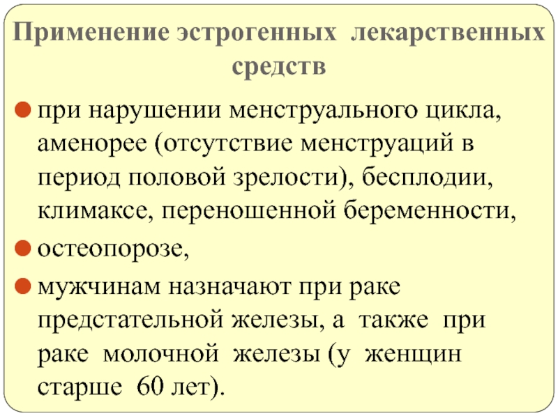 угрозе выкидыша, позднем половом развитии, бесплодии.