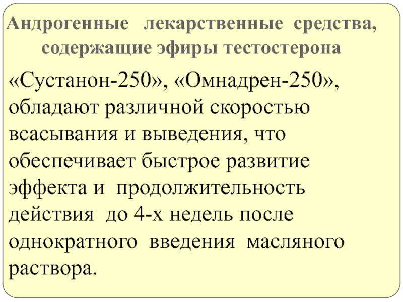 «Сустанон-250», «Омнадрен-250», обладают различной скоростью