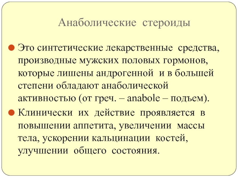 андрогенной и в большей степени обладают анаболической активностью (от греч. – anabole – подъем).