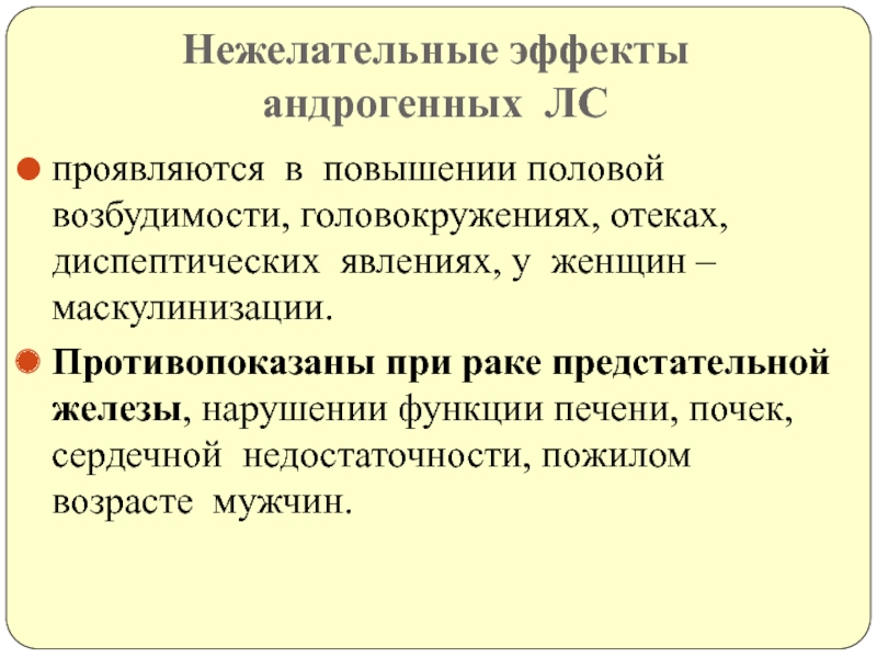 Слайд 117Нежелательные эффекты андрогенных ЛС