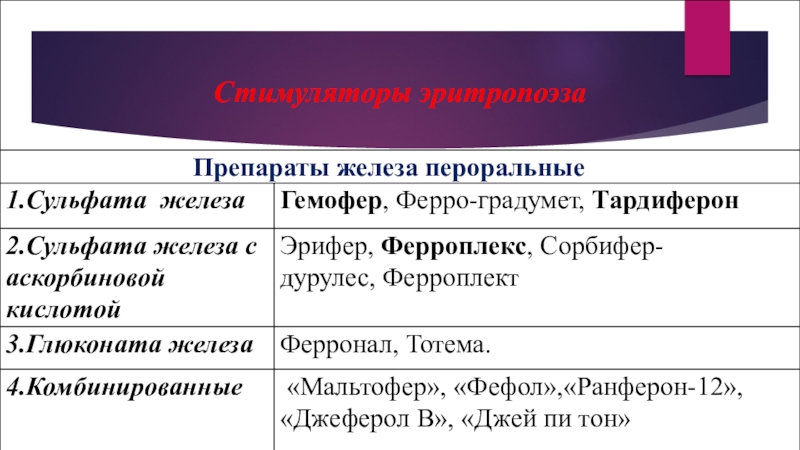 Слайд 802. Указать ЛС железа, назначаемые внутрь: