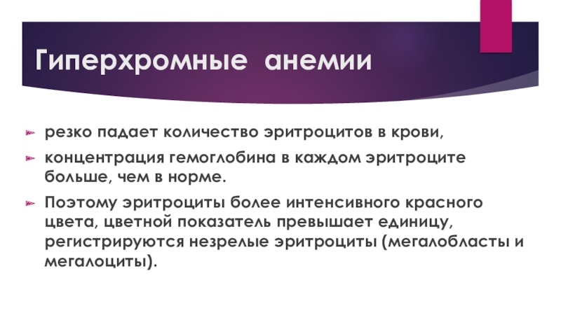 гиперхромные (В12 - фолиево-дефицитные) анемии.