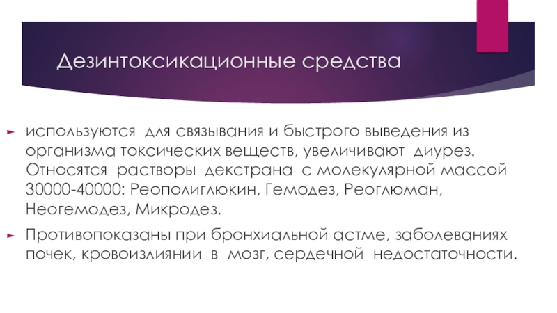 веществ, увеличивают диурез. Относятся растворы декстрана с молекулярной массой 30000-40000: Реополиглюкин, Гемодез, Реоглюман, Неогемодез, Микродез.