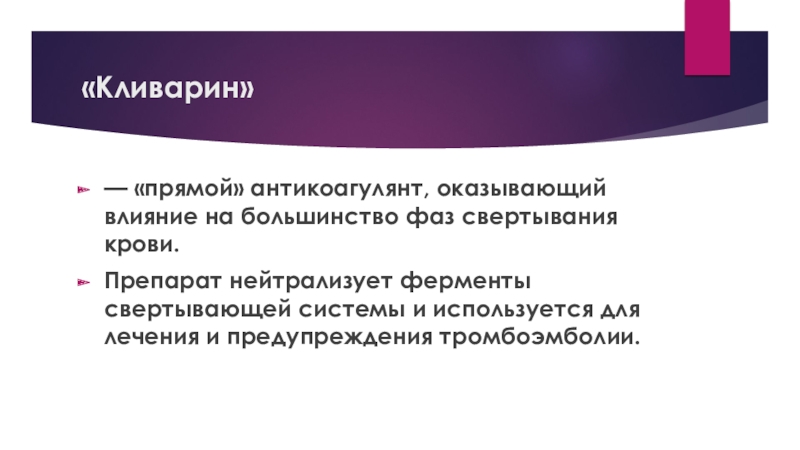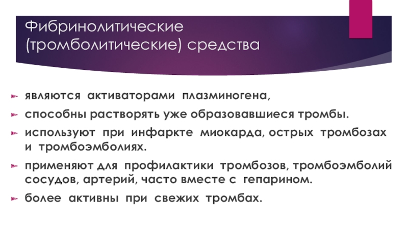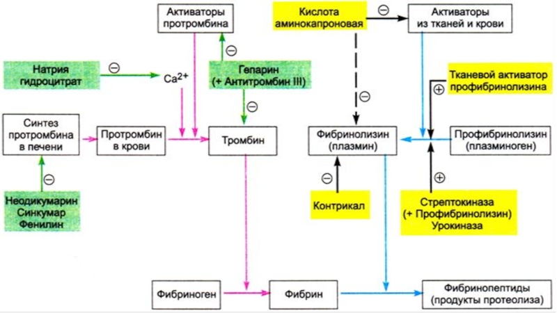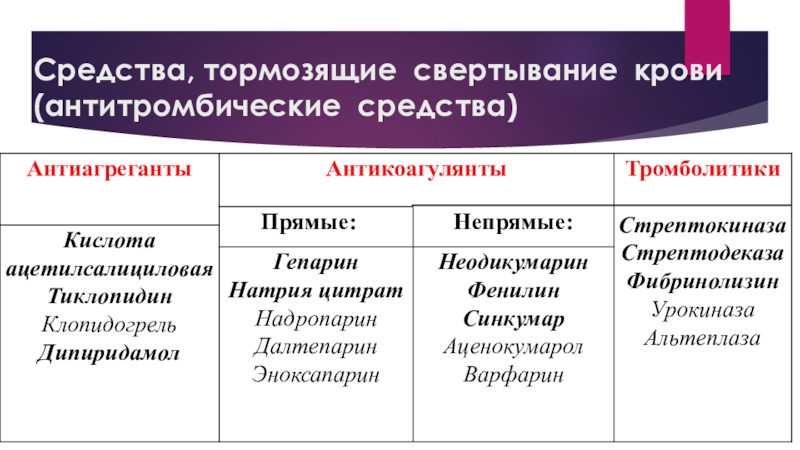 Слайд 18Средства, влияющие на систему свертывания крови и фибринолиз