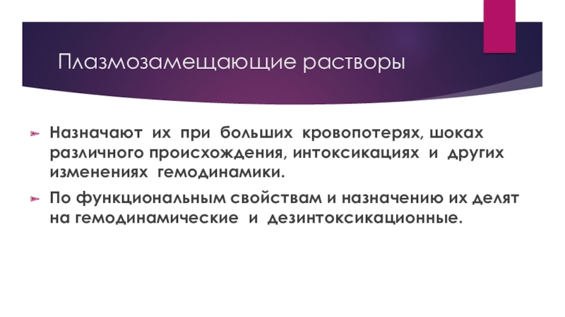 Назначают их при больших кровопотерях, шоках различного происхождения, интоксикациях и