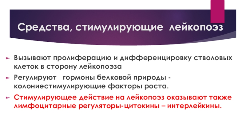 Вызывают пролиферацию и дифференцировку стволовых клеток в сторону лейкопоэза