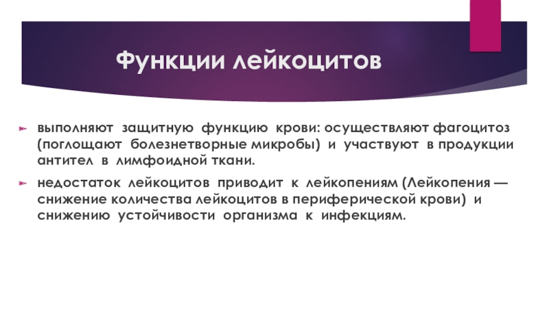 выполняют защитную функцию крови: осуществляют фагоцитоз (поглощают болезнетворные микробы) и